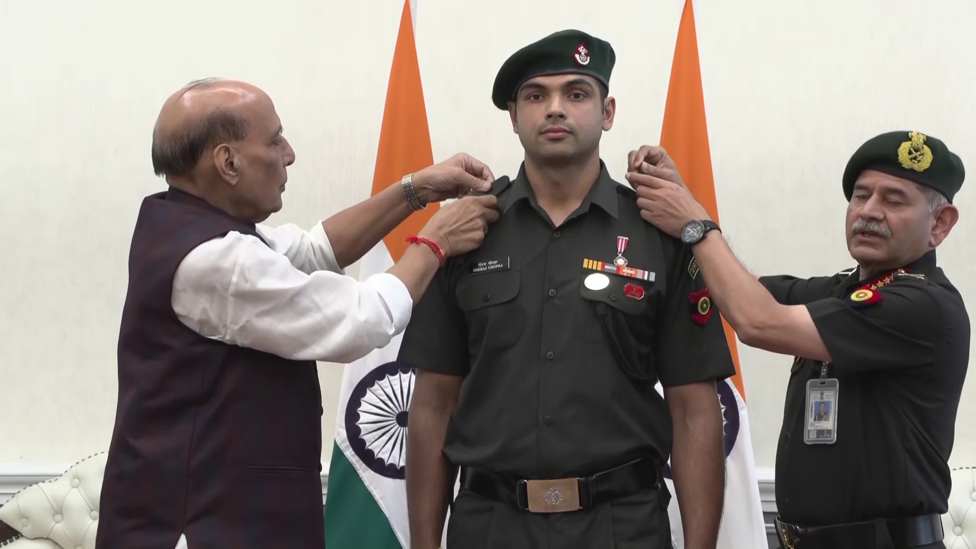 भारत के शीर्ष भाला फेंक एथलीट और दो बार के ओलंपिक पदक विजेता नीरज चोपड़ा को भारतीय सेना में लेफ्टिनेंट कर्नल की मानद रैंक प्रदान की गई है। बुधवार को आयोजित समारोह में रक्षा मंत्री राजनाथ सिंह और थल सेना प्रमुख जनरल उपेंद्र द्विवेदी ने नीरज को यह सम्मान दिया। इस अवसर पर नीरज सेना की वर्दी में नजर आए।