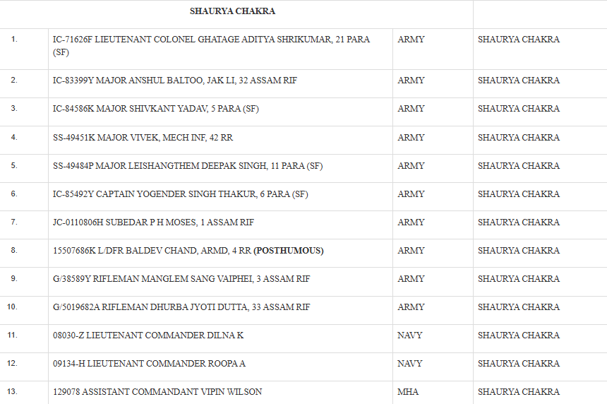 कीर्ति चक्र और शौर्य चक्र के विजेता