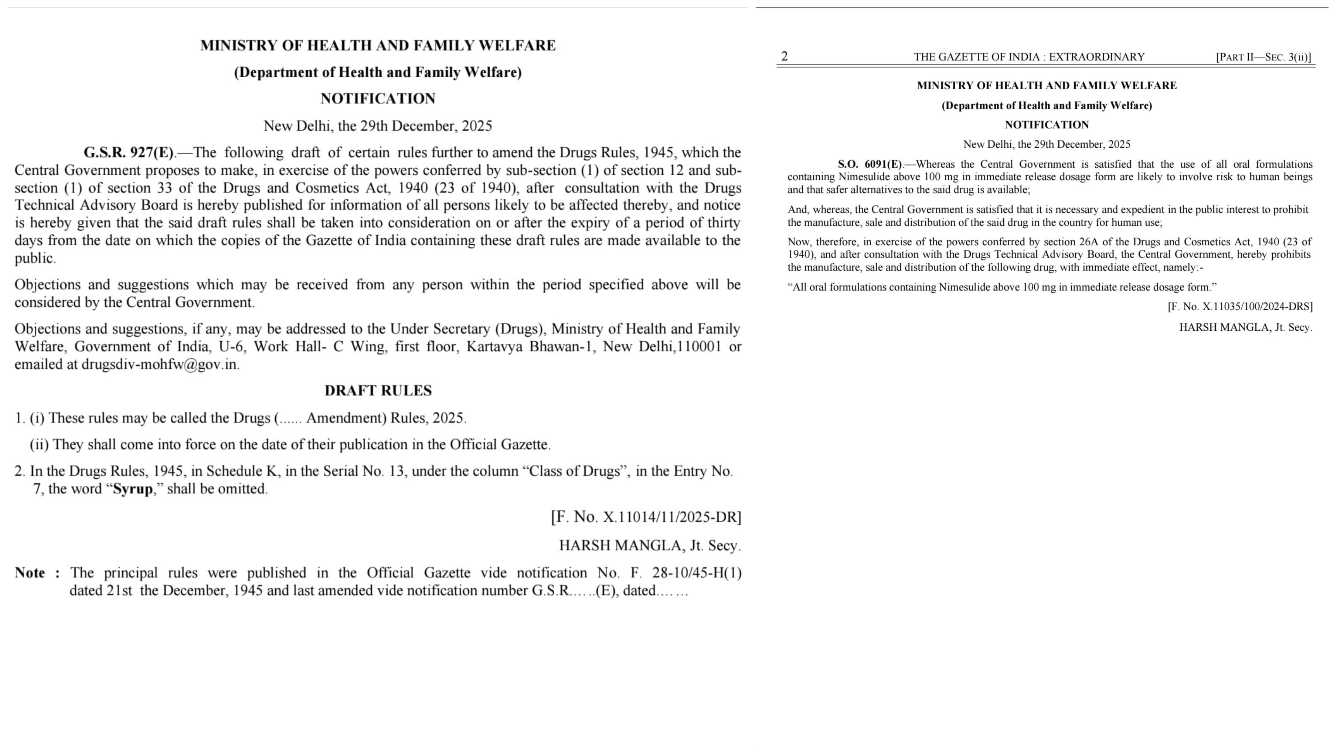 मंत्रालय ने बताया कि यह कदम ड्रग टेक्निकल एडवाइजरी बोर्ड (DTAB) की सिफारिशों और ड्रग एंड कॉस्मेटिक एक्ट, 1940 की धारा 26ए के तहत उठाया गया है।