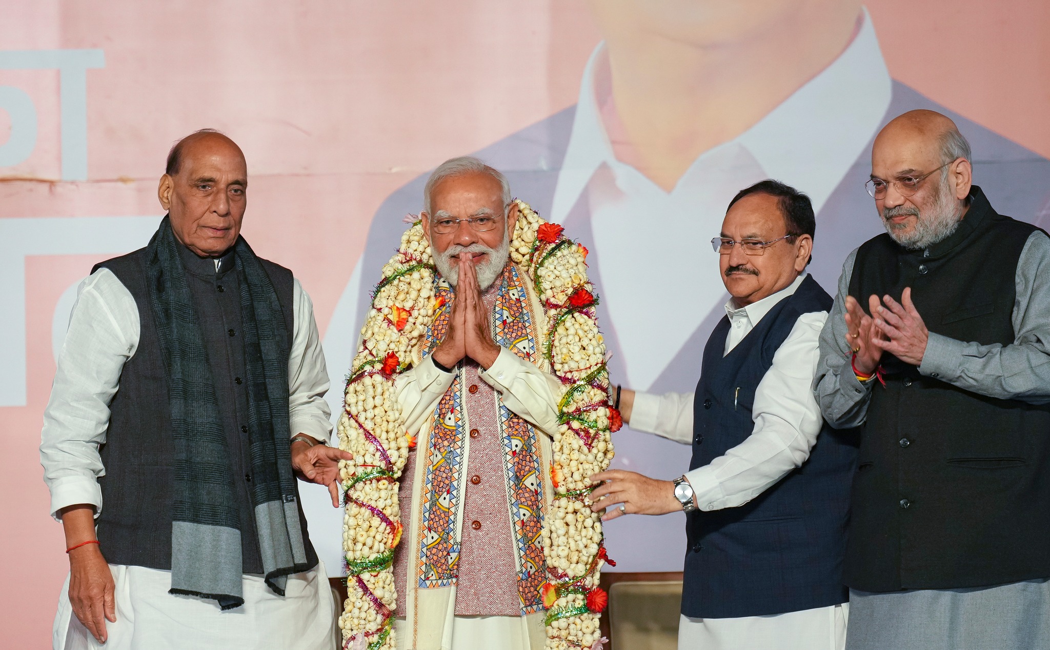 पीएम मोदी का संबोधन सुनने के लिए भाजपा मुख्यालय में भारी संख्या में कार्यकर्ता और नेता उपस्थित थे। राष्ट्रीय अध्यक्ष जेपी नड्डा, गृह मंत्री अमित शाह और रक्षा मंत्री राजनाथ सिंह सहित कई वरिष्ठ नेता कार्यक्रम में मौजूद रहे।