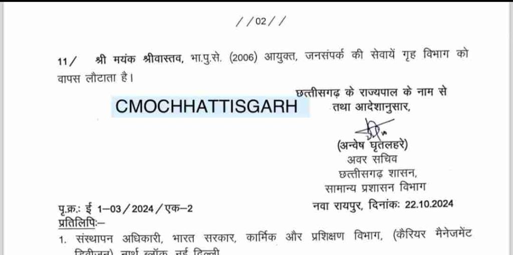 - जनसंपर्क विभाग में कमिश्नर की जिम्मेदारी देख रहे मयंक श्रीवास्तव को गृह विभाग भेजा गया।