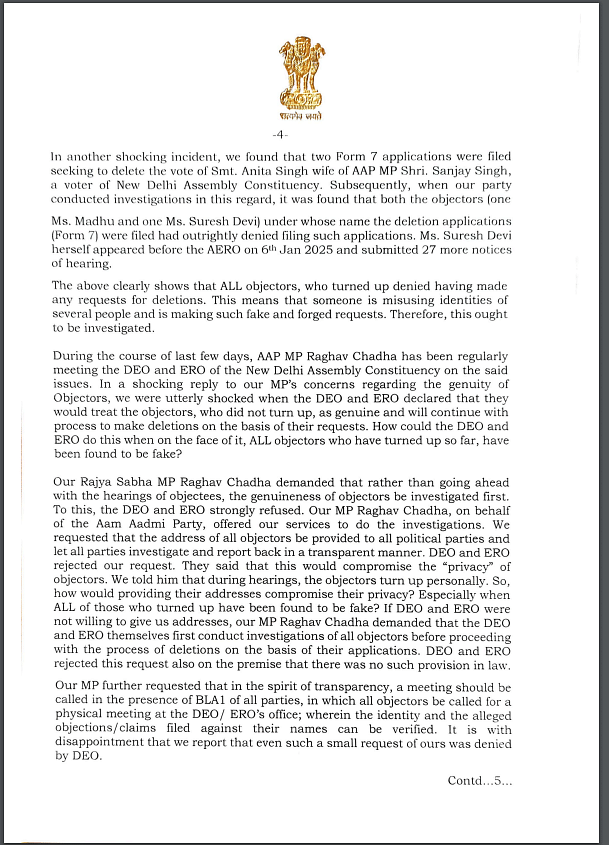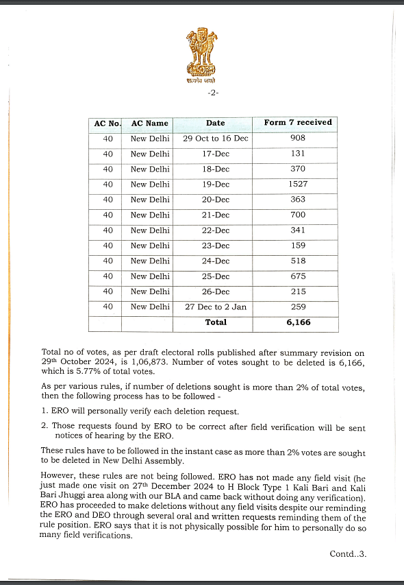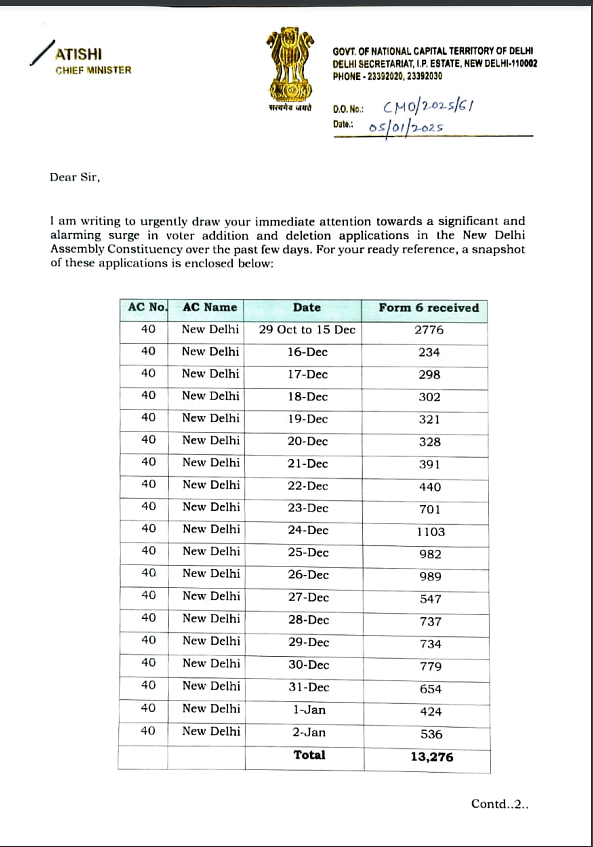 दिल्ली की मुख्यमंत्री आतिशी ने सोमवार को वोटर लिस्ट में नाम जोड़ने और काटने को लेकर चुनाव आयोग को पत्र लिखा है। आतिशी ने नई दिल्ली विधानसभा में वोटों की गड़बड़ी को लेकर जताई चिंता है। इससे पहले उन्होंने प्रेस कॉन्फ्रेंस कर चुनाव में बड़े घोटाले का दावा किया था। उन्होंने कहा कि वोटर लिस्ट में घोटाला हो रहा है। नई दिल्ली विधानसभा सीट पर बड़ा खेल हो रहा है। गलत तरीके से वोट काटने की साजिश हो रही है। इस प्रेस कॉन्फ्रेंस में आतिशी के साथ आप सांसद संजय सिंह और राघव चड्ढा भी मौजूद थे।
