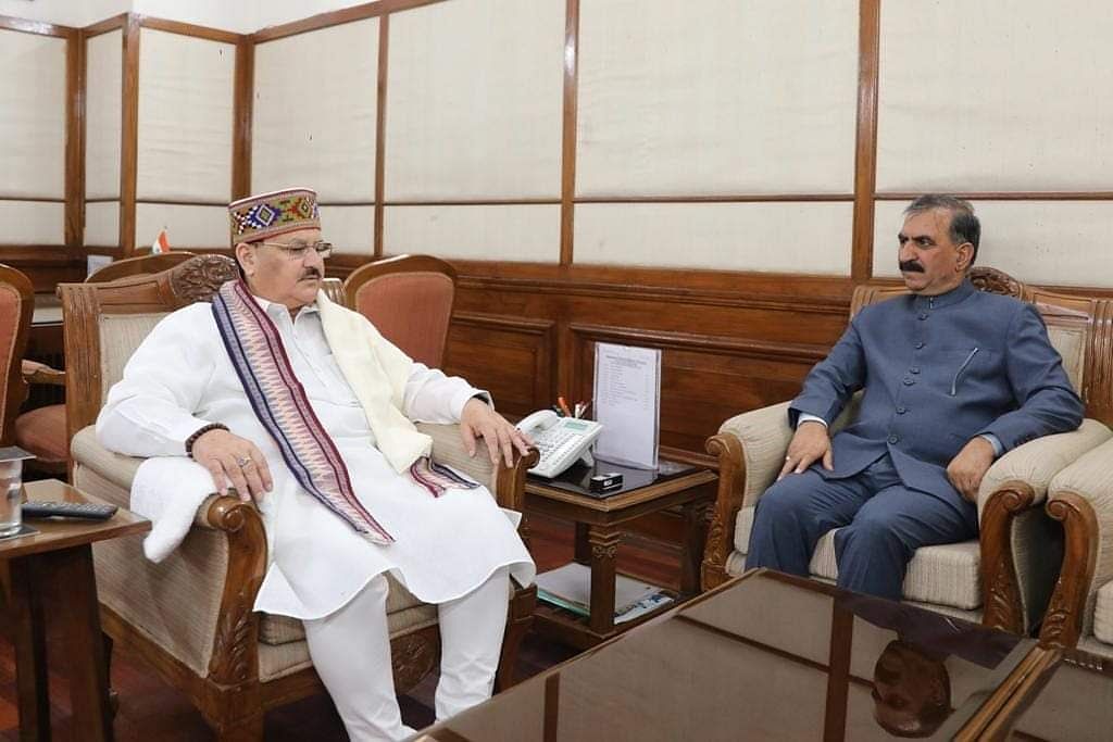 मुख्यमंत्री सुखविंद्र सिंह सुक्खू ने शुक्रवार को नई दिल्ली में भाजपा के राष्ट्रीय अध्यक्ष जगत प्रकाश नड्डा से शिष्टाचार भेंट की। उन्होंने नड्डा से प्राकृतिक आपदा से हुए भारी नुकसान के बारे में चर्चा की। साथ ही हिमाचल को अधिक से अधिक आर्थिक मदद दिलाने का अनुरोध किया।