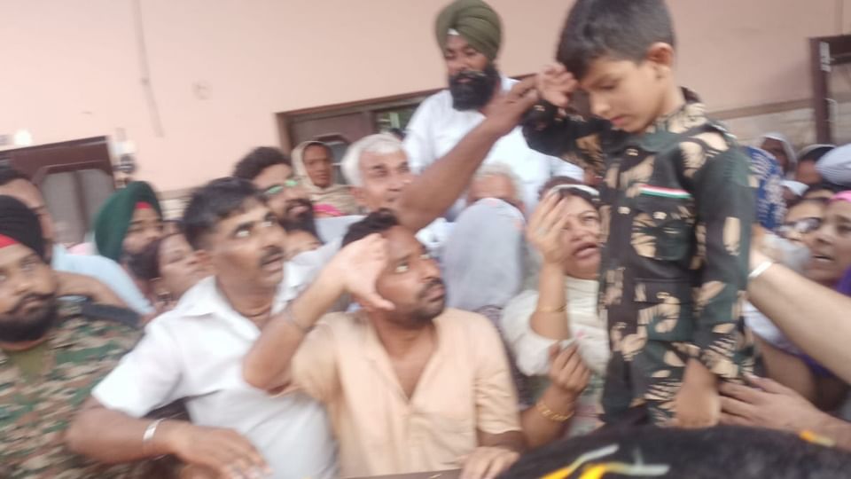 अंतिम विदाई से पहलि कर्नल मनप्रीत के चार साल के बेटे कबीर ने जब अपने पिता को सेल्यूट किया तो पूरा गांव सिसक उठा। कबीर ने सेना की वर्दी पहनी थी और बहुत ही गमगीन दिख रहा था। आसपास लोगों की भीड़ थी। वह कभी मां की गोदी में चढ़ा तो कभी दादी के कंधे पर बैठ गया। शहीद कर्नल के शव के साथ आए सैन्य कर्मियों ने कबीर को दुलार किया और उससे बात की।