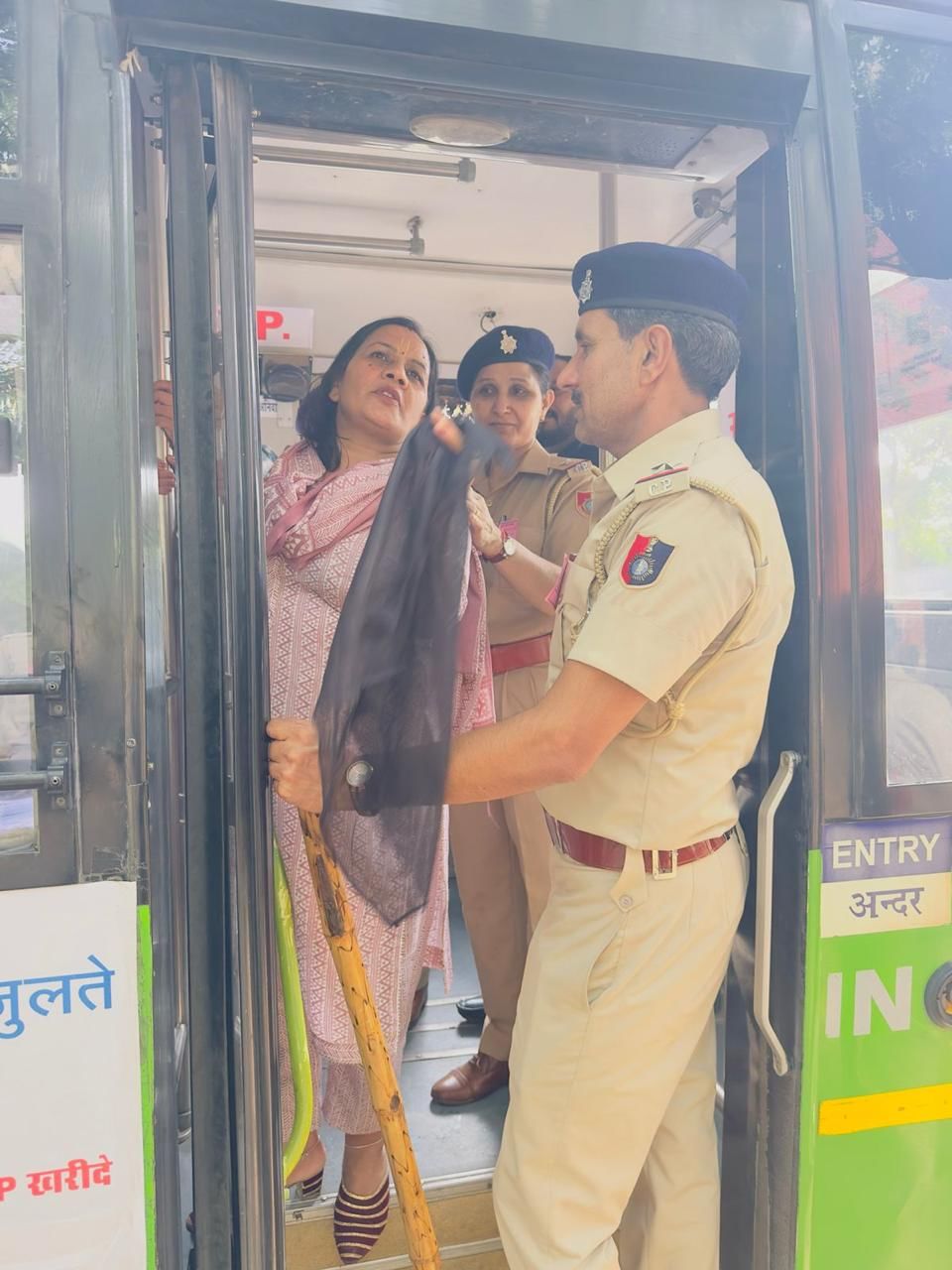 राजनाथ सिंह को काले झंडे दिखाने जाते आप नेता, पार्षद और कार्यकर्ताओं को पुलिस ने हिरासत में लिया है। 39 को पुलिस स्टेशन ले जाया गया है। रैली स्थल के प्रवेश द्वार पर भी ब्लैक टी शर्ट या कुर्ता आदि पहने लोगों को रोका गया है। मंच संचालक के विशेष अनुरोध पर एंट्री हुई है।