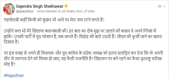 राजस्थान में अलगे साल चुनाव होने, लेकिन प्रदेश की सत्ताधारी पार्टी कांग्रेस में गुटबाजी नजर आ रही है। हाल ही में मुख्यमंत्री अशोक गहलोत को अपना इस्तीफा भेजने वाले विधायक गणेश घोघरा ने डूंगरपुर जिला अध्यक्ष दिनेश खोड़निया पर जमकर निशाना साधा। उन्होंने कहा- मैं गुलाम विधायक नहीं हूं। जनता ने मुझे चुना है और मैं उनके लिए काम करूंगा।