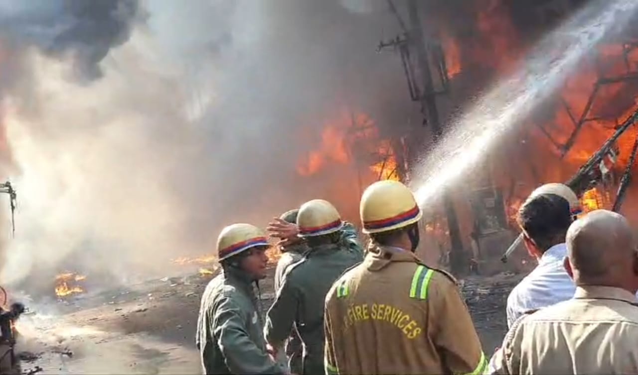 आग की लपटों से उठता धुआं करीब एक किलोमीटर दूर से दिखाई दे रहा था। फायर ब्रिगेड की आधा दर्जन से अधिक दमकल आग को काबू करने का प्रयास कर रही थीं।