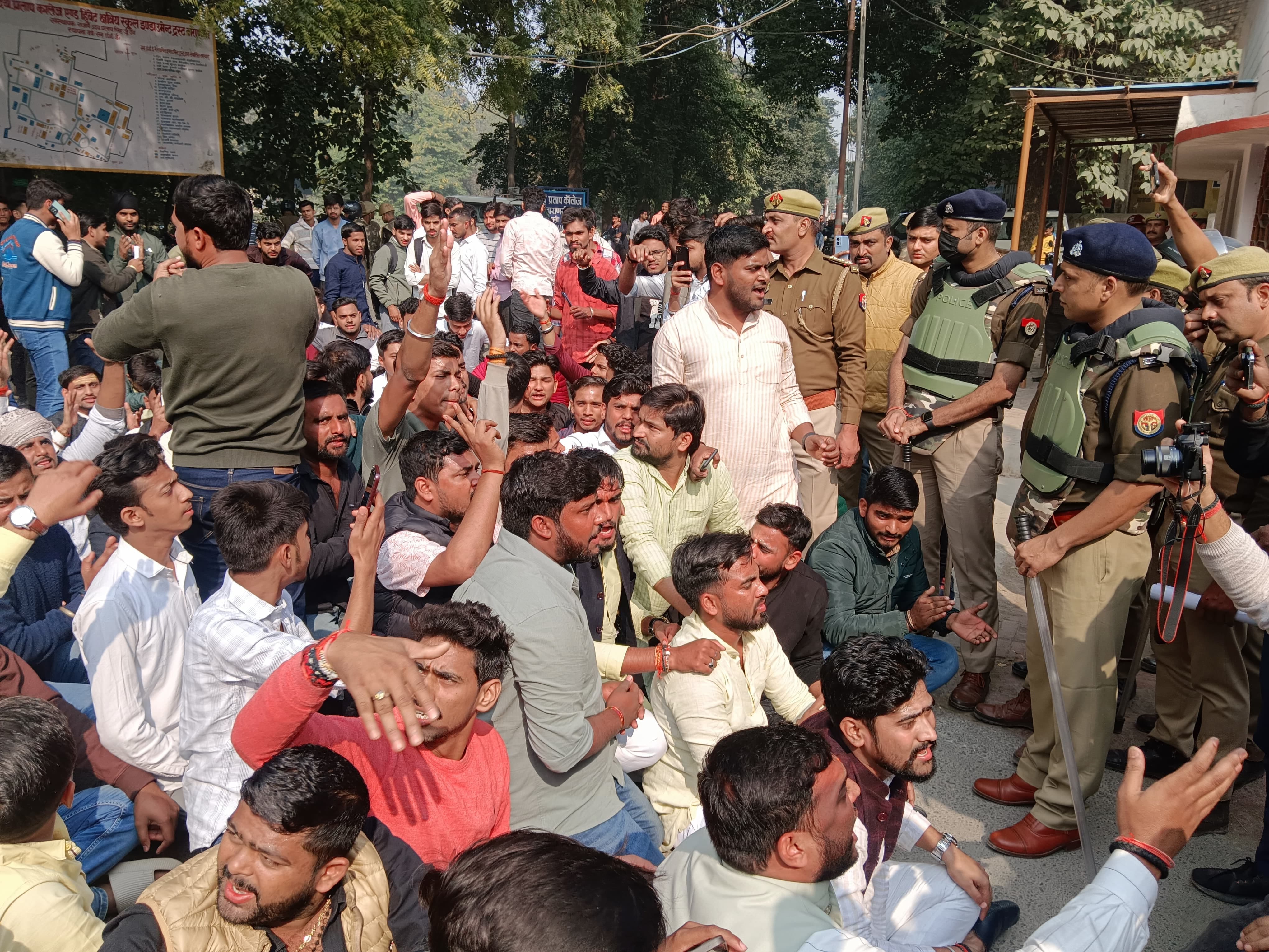 हनुमान चालीसा का पाठ करने पहुंचे छात्रों को काबू करने में पुलिस के भी पसीने छूट गए। छात्रों के विरोध के बीच पुलिस अधिकारी उन्हे समझाने में जुटे रहे, लेकिन छात्रों की जुबान पर केवल जय श्रीराम का नारा ही रहा।