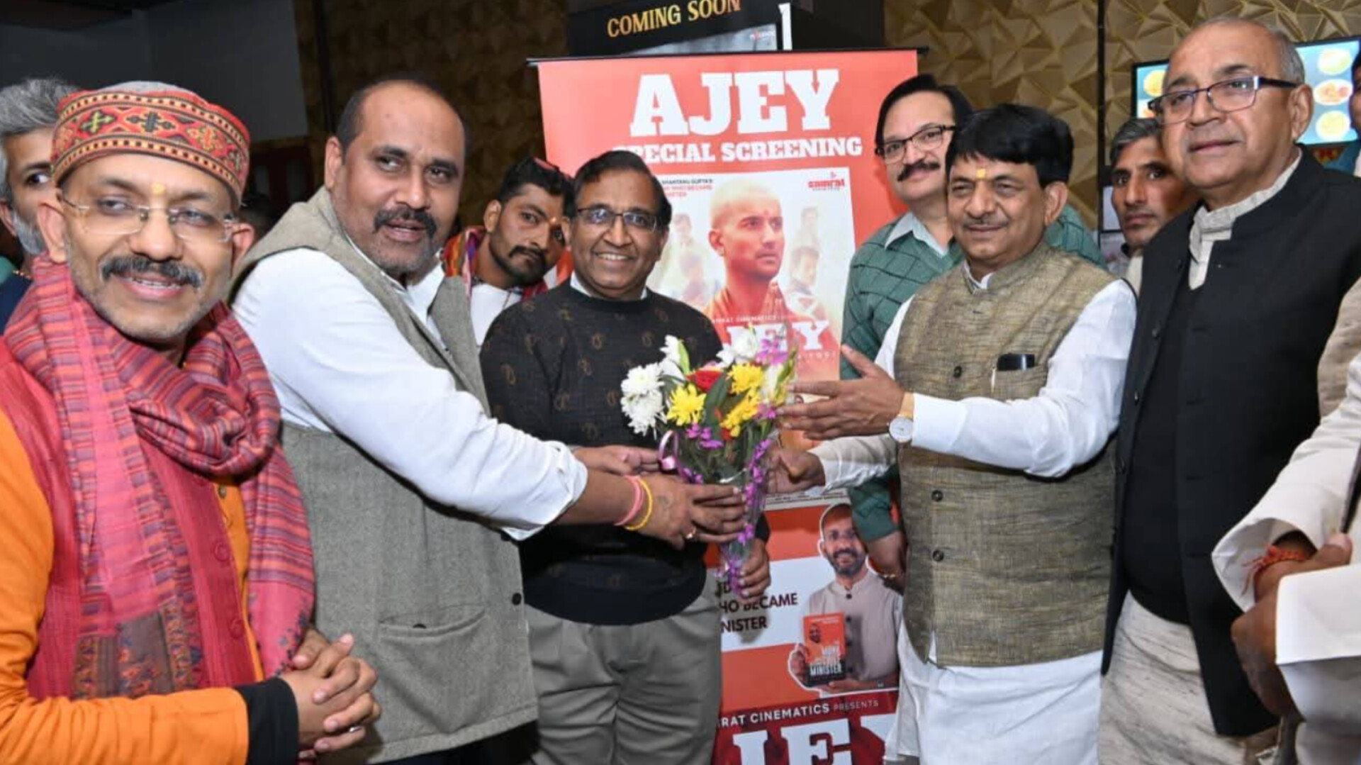 स्क्रीनिंग के दौरान अजय फिल्म के आयोजक अजय स्वरूप अग्रवाल ने मंत्री कपिल देव अग्रवाल समेत सभी विशिष्ट अतिथियों का पुष्पगुच्छ भेंट कर स्वागत किया। कार्यक्रम के दौरान फिल्म को लेकर दर्शकों में खासा उत्साह देखा गया।